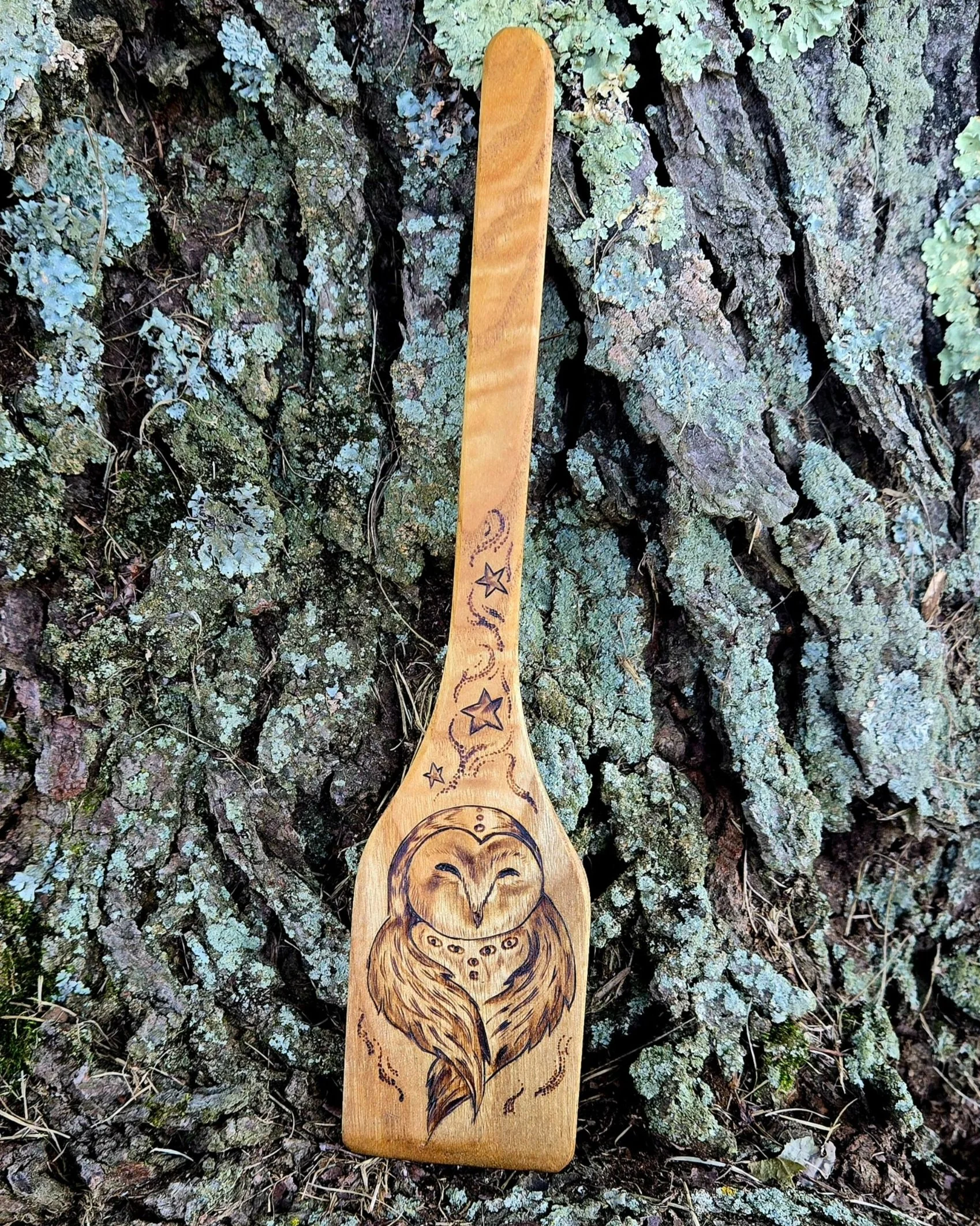 These are hand carved by the Boyd family. Some of these are spoons and some are spatulas. The Large sized ones measure at least 11 inches and can go up to 13 inches long.